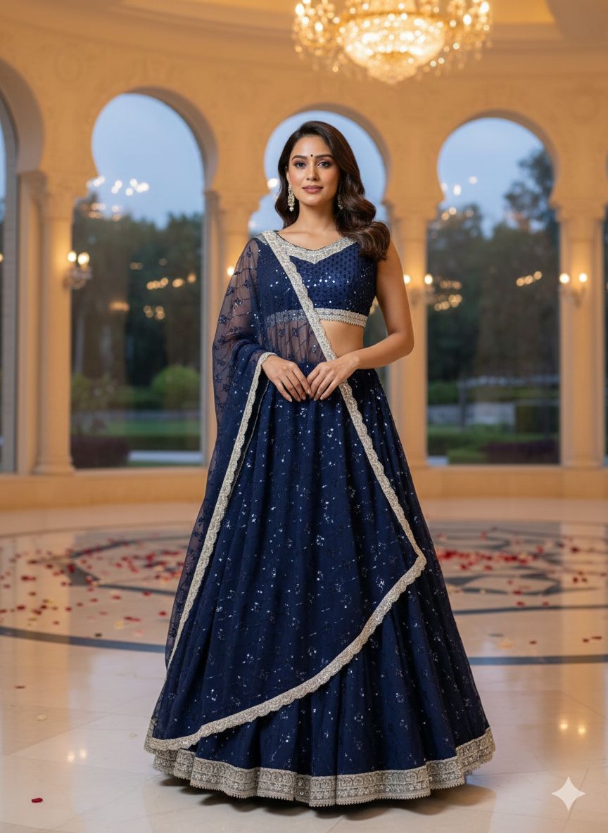 Midnight Blue Sequin Lehenga with Silver Embroidery