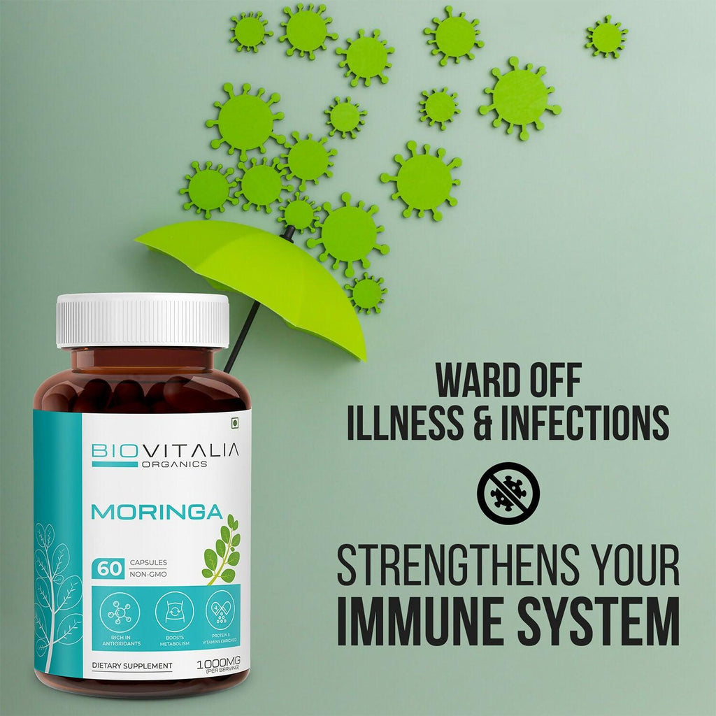 Paraphrase: Biovitalia Organics Moringa Capsules For Immunity Booster How to use: As suggested by the expert. Legal Disclaimer: Statements regarding dietary supplements have not been evaluated by the FDA. Product images are for illustrative purposes only. Images/packaging/ labels may vary from time to time due to changes made by the manufacturer's manufacturing batch and location.