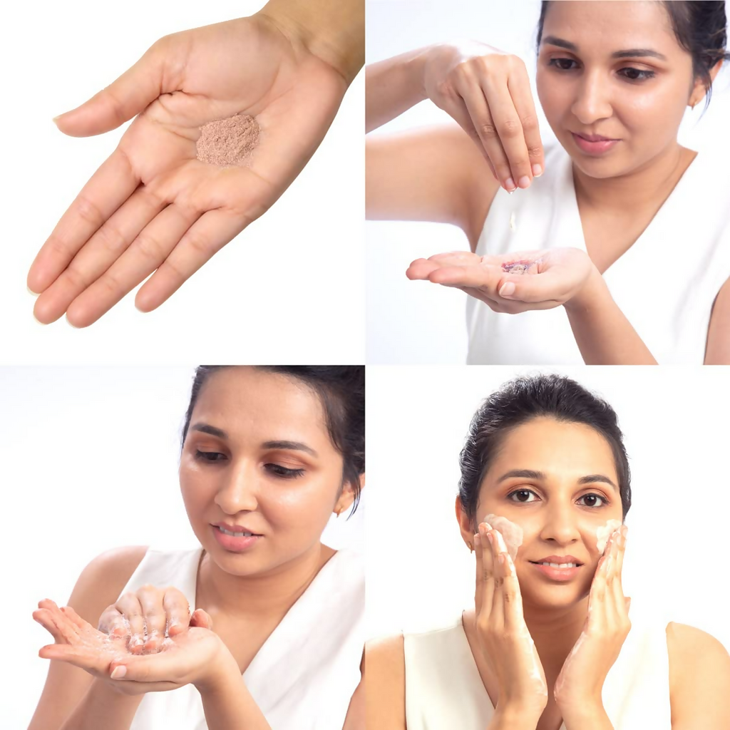 Paraphrase: Brillare 100% Natural Rose Powder Face Wash With Anti Ageing Skin Sandalwood & Coconut About the Product: Brillare rose petal powder for face wash is 100 % natural with ingredients like Rose Petal & Sandalwood. How to use: Skin looks visibly younger & Vibrant Reduces the appearance of age spots Strengthens & revitalizes the skin Provide extra mild yet effective cleansing Ingredients: Coconut Oil Sandalwood Legal Disclaimer: Product images are for information purposes only and may contain additional
