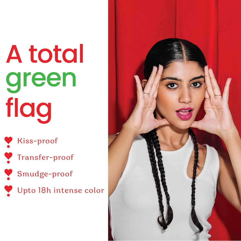 Paraphrase: Color Cupid Matte Intense Color 18-Hour Stay Liquid Lipstick - Romantic Red About the product : Say Hello to Makeup that reflect Every Shade and Version of you. No Validation Necessary. No Validation Necessary. KISS ME MORE (WITHOUT LEAVING A TRACE!): No more stressing about lipstick on your clothes, your mask, or your crush's cheek. transfer-proof and smudge-proof, it can handle