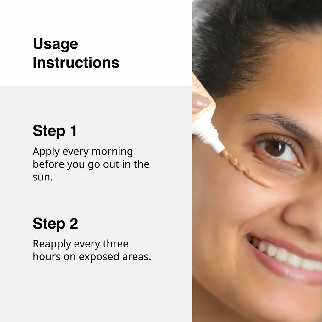 phrase: Cureskin Mineral Sunscreen Matte Finish Tinted SPF 50 PA++++ About the Product: Zinc Oxide: Provides broad-spectrum protection against UVA and UVB rays, soothing the skin. Titanium Dioxide: Another mineral-based ingredient offering broad-spectrum protection, is gentle on the skin. It helps even out the skin tone and provides a natural-looking finish. It helps even out the skin tone and provides a natural-looking finish. It helps even out the skin tone
