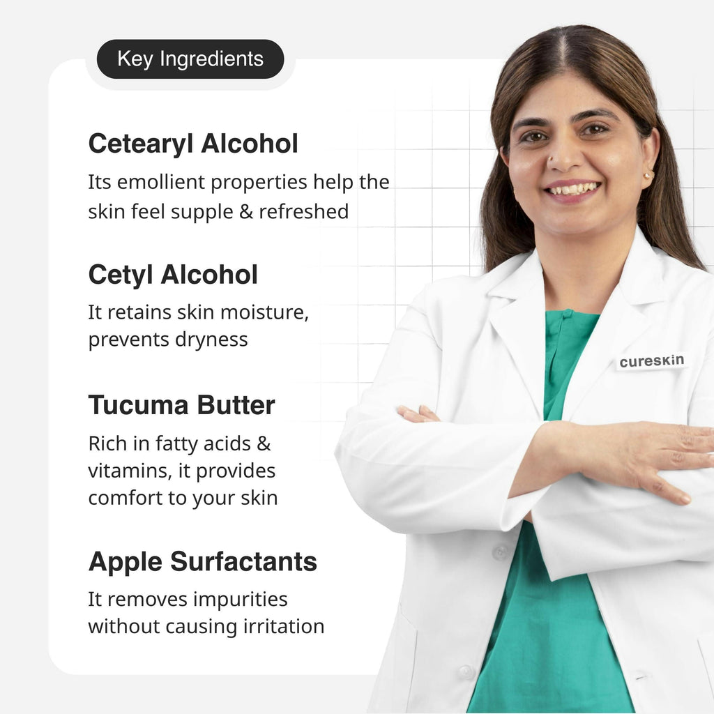 phrase: Cureskin Sensitive Pro Cleanser with Tucuma Butter & Apple Extracts for Sensitive Skin Face Wash About the Product: Gentle Cleansing: Effectively removes impurities without stripping away natural moisture or causing irritation. Maintains pH Balance: Formulated to maintain your skin's natural pH level, promoting overall health and preventing dryness.