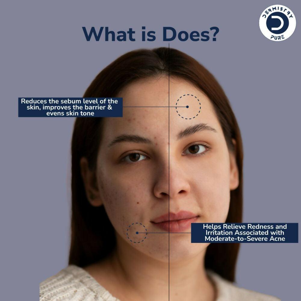 : Dermistry Pure 12% Niacinamide 2% Zinc Serum About the Product : A daily serum formulated with pure Niacinamide (Vitamin B3) and Zinc. Niacinamide reduces the sebum level of the skin, improves the barrier & evens our skin tone. Zinc also has anti-inflammatory properties, which helps relieve redness and irritation associated with moderate-to-severe acne.