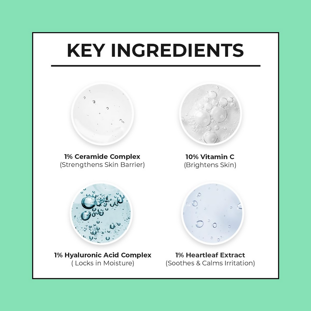 phrase: Dr. Sheth's Ceramide & 10% Vitamin C Ampoule Serum About the Product: Pure and potent skin brightening formula contains 10% vitamin c. Pure and potent skin brightening formula contains 99% pure-grade vitamin C for maximum efficacy in brightening skin tone and reducing pigmentation. Strengthens skin barrier this serum combines the powers of 1% ceramides & 1% hyaluronic acid to strengthen skin barrier, lock in