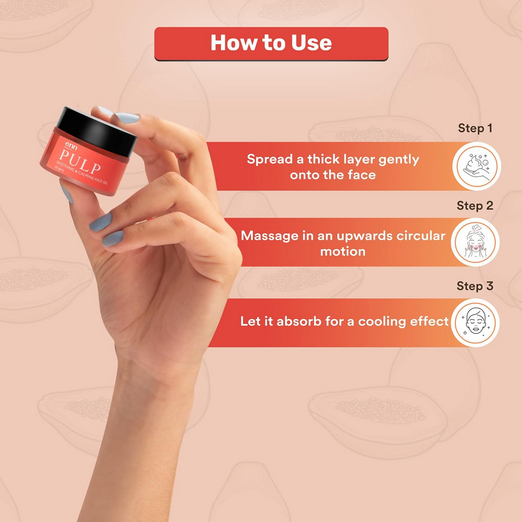 Paraphrase: Enn Pulp Soothing & Calming Face Gel About The Product: We bring you products that are safe, non-toxic, and highly effective. We believe in tangible results you can see and feel, and we believe in power of nature to bring these results.