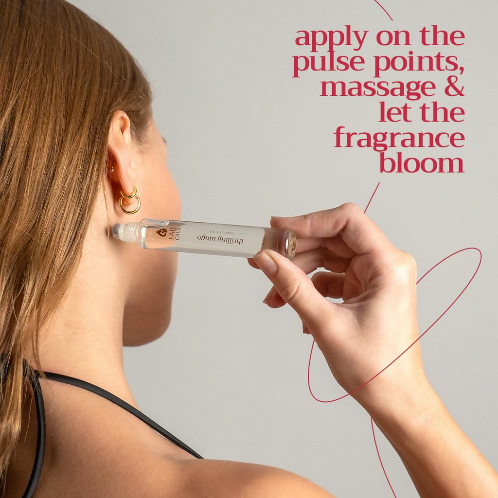phrase: Fab Oils Thrilling Tango Perfume Oil With Citrus, Spicy & Woody Blend About the Product: Feel the thrill: indulge in a mesmerizing roll-on fragrance that mirrors the passion of the tango. The perfect blend of spicy and woody notes creates a captivating allure, igniting your senses with every application.