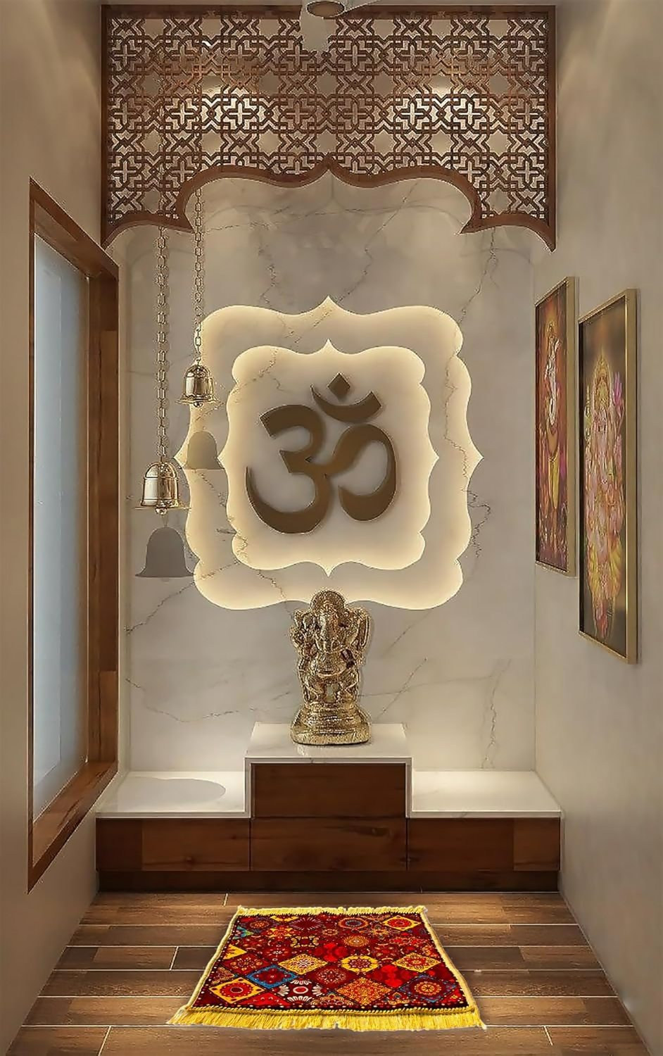 phrase: Glun 24 * 24 Inch Velvet Multipurpose Square Carpet Or Mat For Pooja Aasan, Sitting, Meditation 2 Piece Pack About the Product: Dimensions: 24 * 24 Inch Size: Large Material: Polyester Colour: Multicolour Pack of 2: The mats come in a convenient pack of 2, offering flexibility in placement and ensuring you have a spare mat for different areas or occasions. Aesthetic Appeal: The chosen colors and design contribute to the mats' aesthetic appeal, seamlessly