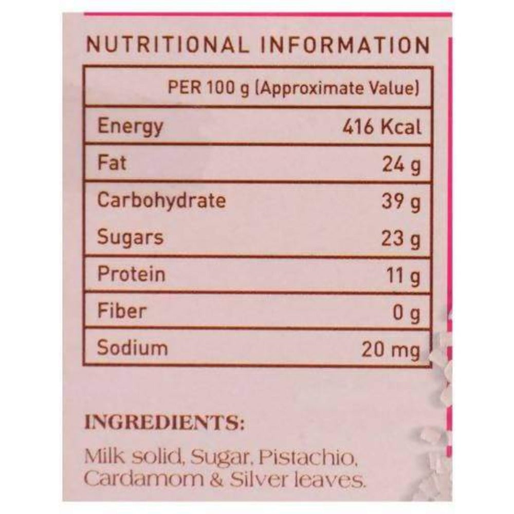 Traditional Indian Burfi made with Pista, Elaichi Powder, Desi Ghee, Mawa, Suga.