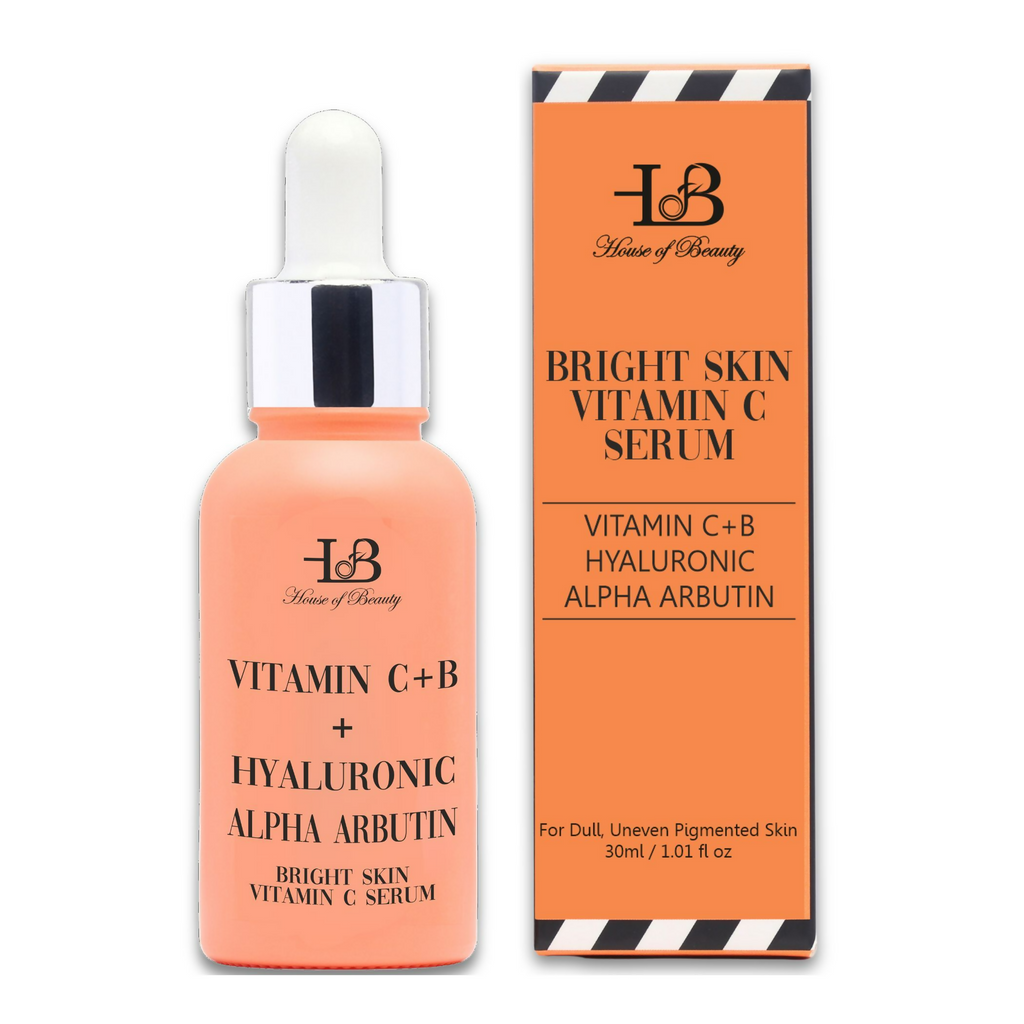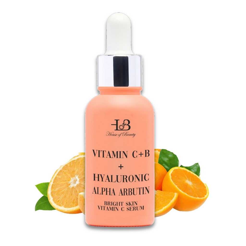 Paraphrase: House of Beauty Vitamin C B+ Serum Ingredients: Vitamin C-5%, Hydroxyethyl urea-1%,PEG-12 dimethicone-2% Aqua,Glycerin-2%, Amodimethicone-1.5%,Sodium PCA-1%, Microcare PEHG- 0.8%,Betaine-1%, Alpha arbutin-1%,Hydroxyethyl cellulose-0.5%,Vitamin B3-2%,Hyal