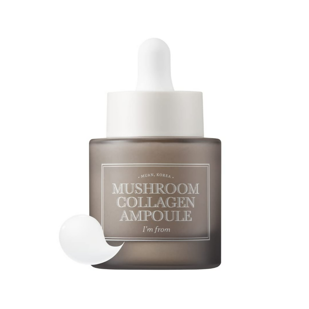 Paraphrase: I'm From Mushroom Collagen Ampoule About the Product: Anti-aging ampoule with 20% Vegan, Plant Based Mushroom Collagen which provides resilience to sagging skin Improves skin elasticity, firmness and density, making it plump and healthy Collagen component is drawn from Tremella Fuciformis (Mushroom) through the high concentration extraction PHYTO-ACTIVE Method at a temperature of 1000c for 30 hours Lightweight and milky texture that absorbs