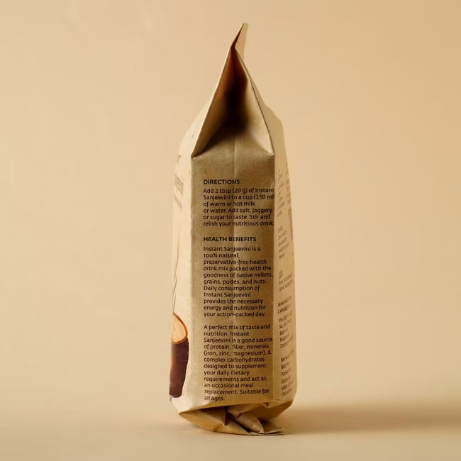 - Mix 2 tablespoons (20g) Sanjeevini with a cup (250ml) of boiling water or milk.