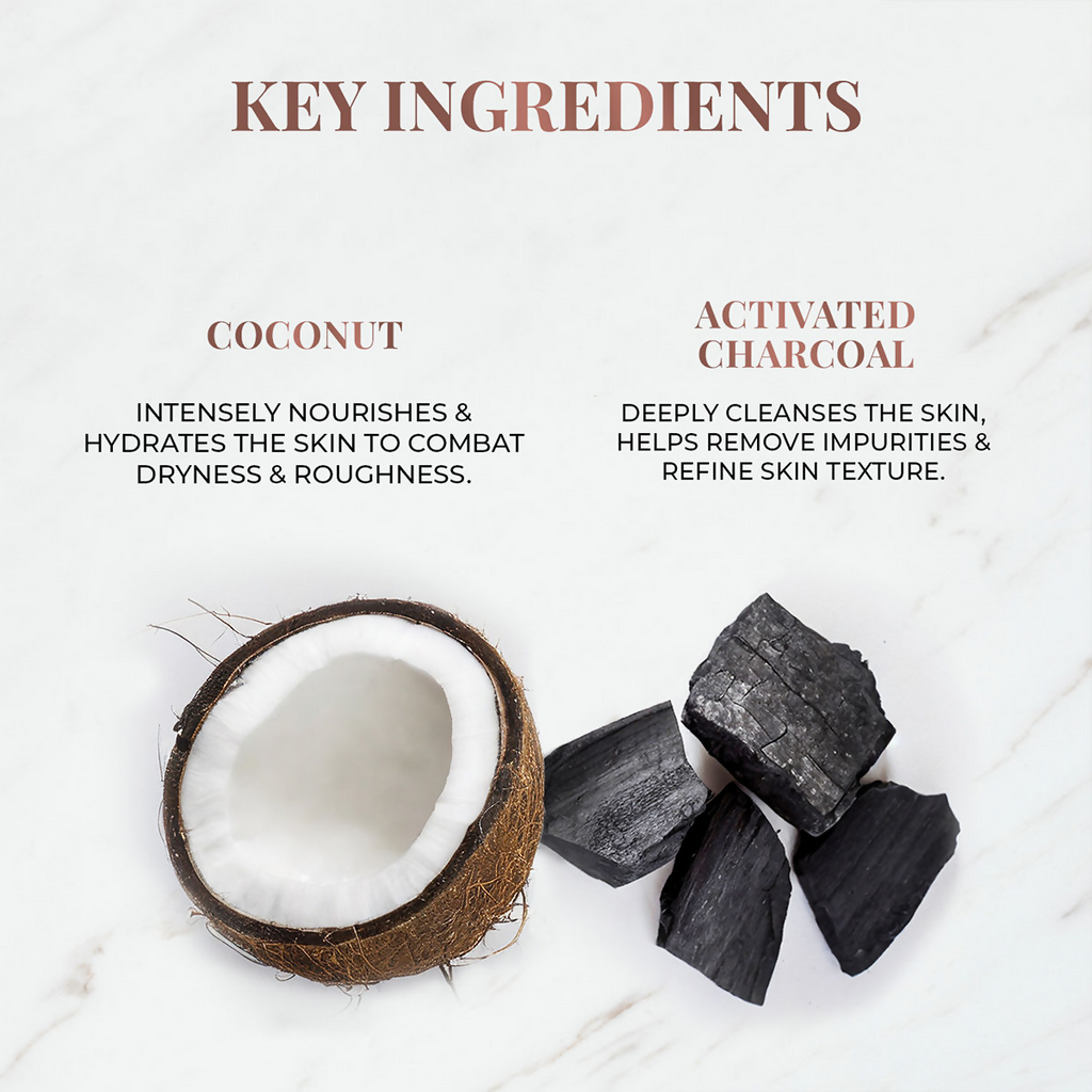phrase: Just Herbs Coconut + Activated Charcoal Deep Cleansing Bathing Bar About the Product: Pamper your skin with a luxuriously clean and hydrating bath experience. Get rid of dust, dirt and grime and enjoy deeply cleansed, well-nourished skin with this Deep Cleansing Bathing Bar.