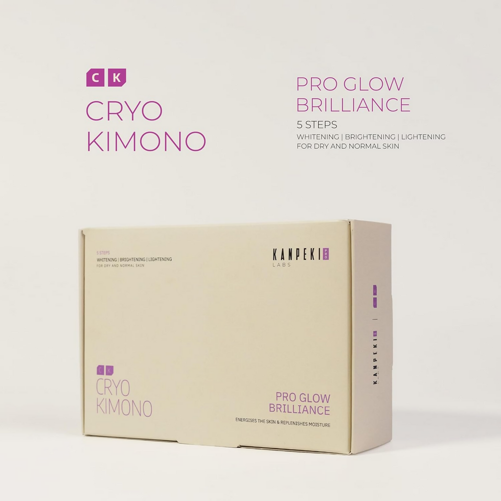 Paraphrase: Kanpeki Cryo Kimono Pro Glow Brilliance - 5 Steps Facial Kit About the product: Whitens complexion for a radiant glow. Brightens skin, enhancing overall luminosity. Lightens dark spots, promoting an even tone. Nourishes dry and normal skin for a supple feel. Achieves a radiant glow with lasting brightness. Legal Disclaimer : Product images are for information purposes only.