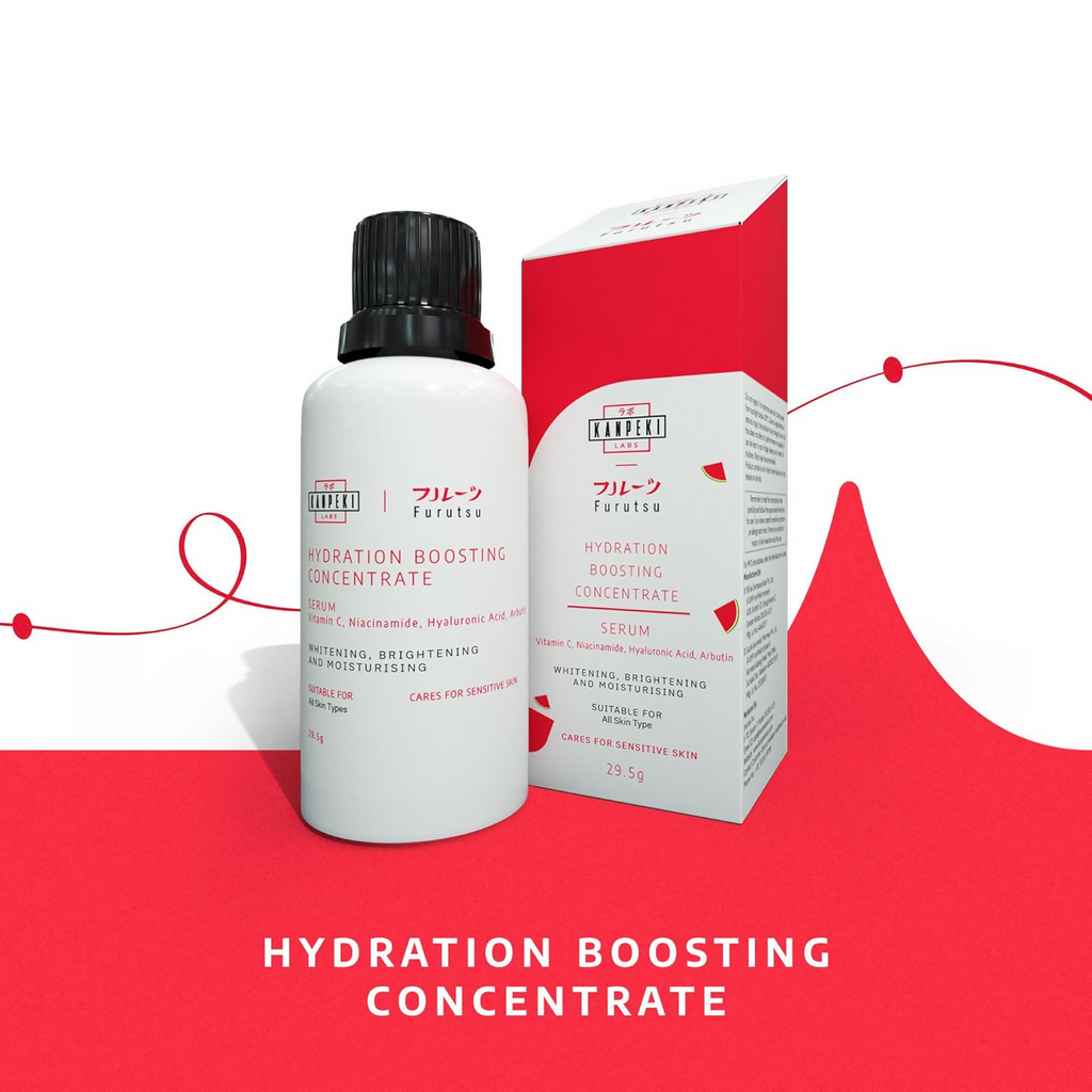 Paraphrase: Kanpeki Furutsu Hydration Boosting Concentrate Serum About the product : Bio-fermented antioxidant ingredients and phytochemical blend for immediate hydration, strengthened connective tissues, and protection against free radicals. Tamarind as an alternative to hyaluronic acid, providing healthy and youthful appearance. Pleasant fluidity of the serum, leaving the skin softer, velvety, and unclogged pores. Maximizes hydration and anti-aging properties when used in combination with the