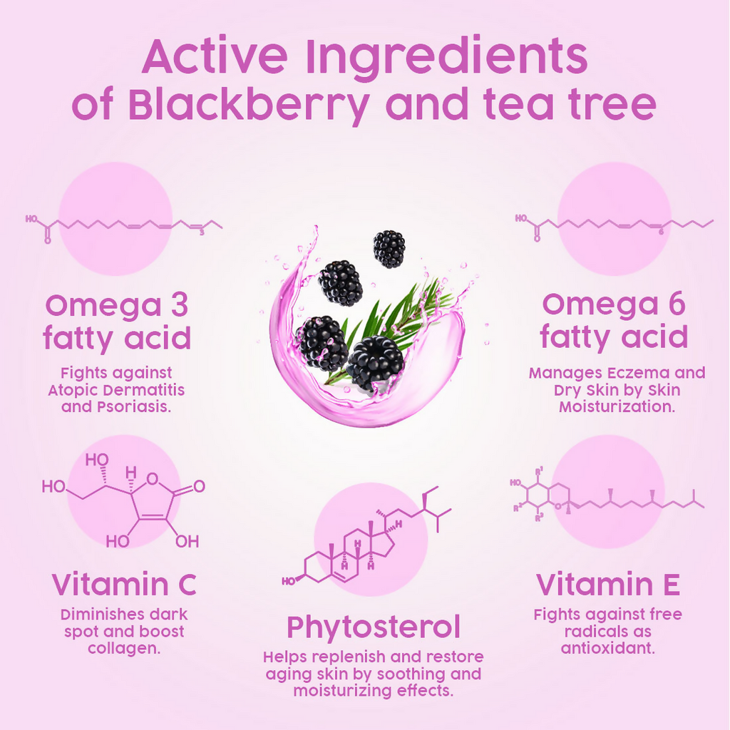 Paraphrase: Keya Seth Aromatherapy Blackberry Fresh Look Face Wash Ingredients: Blackberry Extract Tea Tree Oil Orange and Grapes Lavender Essential Oil Rosemary and Sweet Geranium Essential Oil How To Use: Take a small amount of the face wash on the palm of your hand, mix with little water. Massage your face and neck thoroughly for 1 minute. Rinse completely with water. Legal Disclaimer: Product images are for information purposes only and may contain additional ingredients.