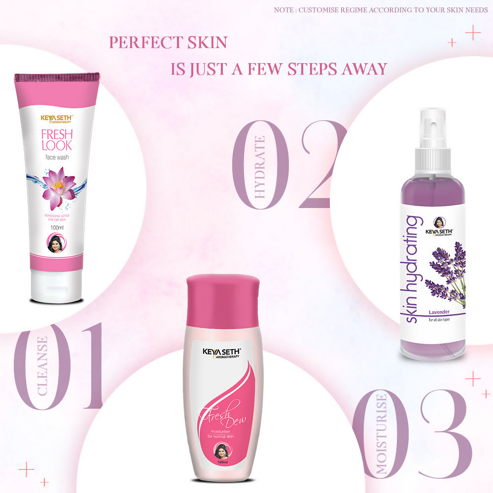 Paraphrase: Keya Seth Aromatherapy Skin Hydrating Lavender Toner Ingredients: Lavender Essential Oil Saffron Essential Oil Vitamin E How To Use: For best results cleanse your face and neck with any suitable fresh-look face wash; apply the toner directly twice daily; massage with any moisturizer that suits your skin type. Legal Disclaimer: Product images are for illustrative purposes only. Images/packaging/ labels may vary from time to time due to changes made by the manufacturer's manufacturing batch and location