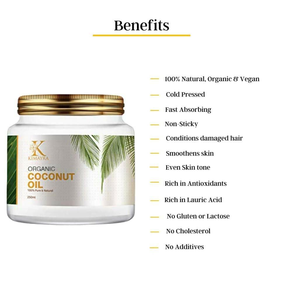 : Kimayra World Organic Cold Pressed Coconut Oil with Natural Aroma of Coconut Oil for Hair & Dry Skin About the Product: PURE ORGANIC COLD PRESSED COCONUT OIL FOR HAIR GROWTH – This coconut oil cold pressed solution is equipped with vitamins and essential fatty acids that promote nourishment to the hair scalp. This coconut oil organic natural enables you to feed your skin natural nutrients. Massage with this oil helps you to get relaxation and rejuvenate the body.