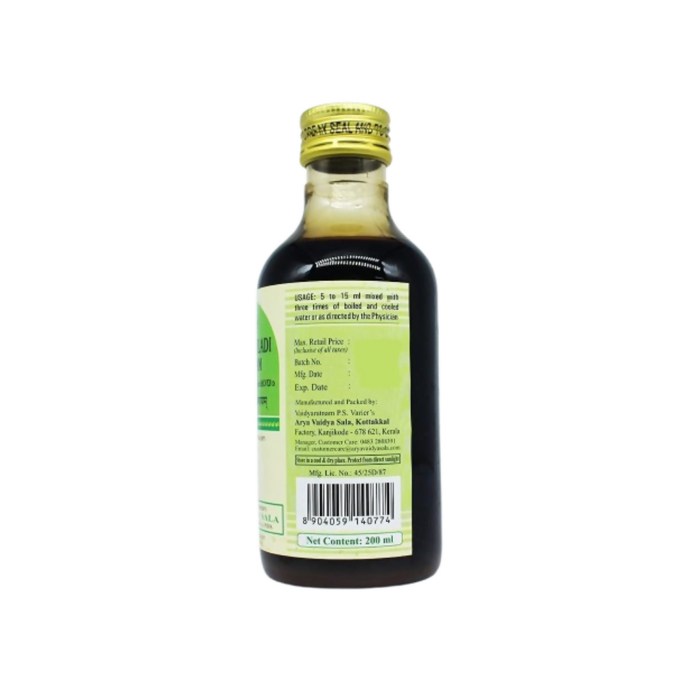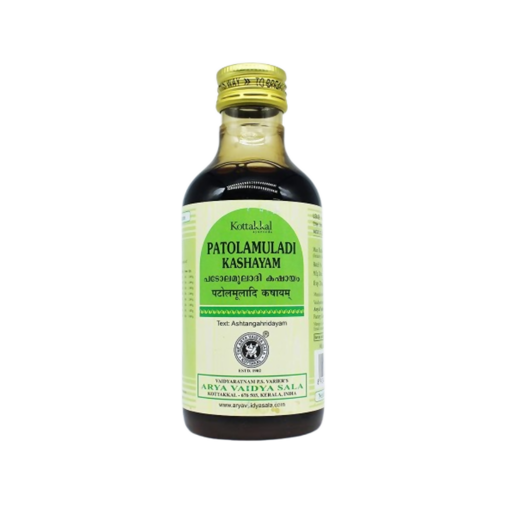 : Kottakkal Arya Vaidya Sala Patolamuladi Kashayam Ingredients: Patolamuladi Kashayam How to use: Two to three teaspoon for adults and one to two teaspoon for teens mixed with equal quantity of luke warm water or as per recommended dose or as directed by the expert Legal Disclaimer: Product images are for information purposes only and may contain additional ingredients.