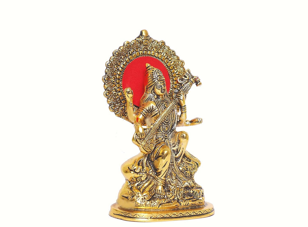 Saraswati is the Hindu goddess of wisdom, learning, knowledge, arts, music & skills. Devotees of Saraswati benefit immensely with these qualities. This aesthetic makes a beautiful home decor item.