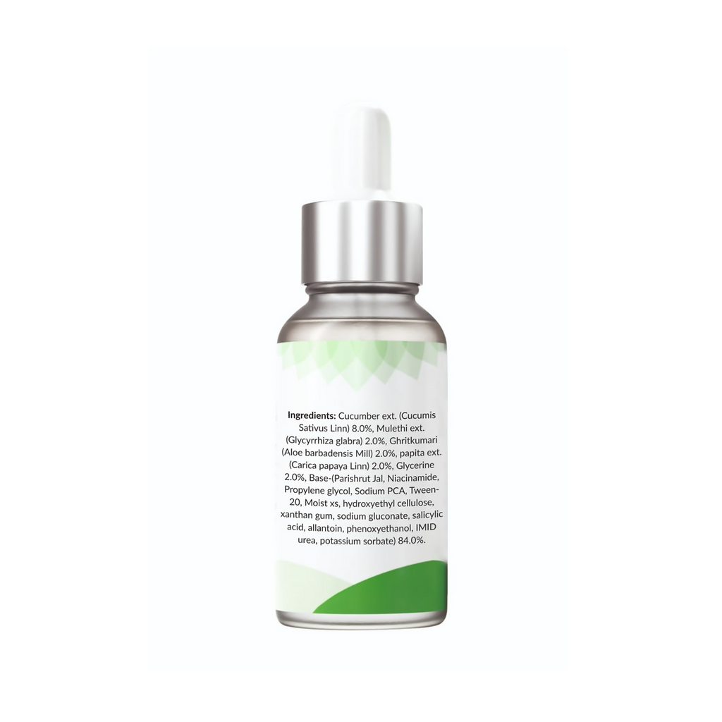 phrase: Kulsum’s Kaya Kalp Cucumber Face Serum With Salicylic Acid. The product is for sebum & Blackhead Control About The Product Kulsum’s Kaya Kalp Herbals Cucumber Face Serum with Salicylic Acid. Ingredients: Cucumber Extract, Papaya Extract, Salicylic Acid. Cucumber, aloe vera, papaya, niacinamide, and salicylic acid.