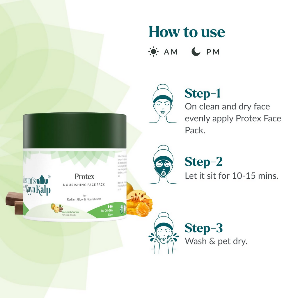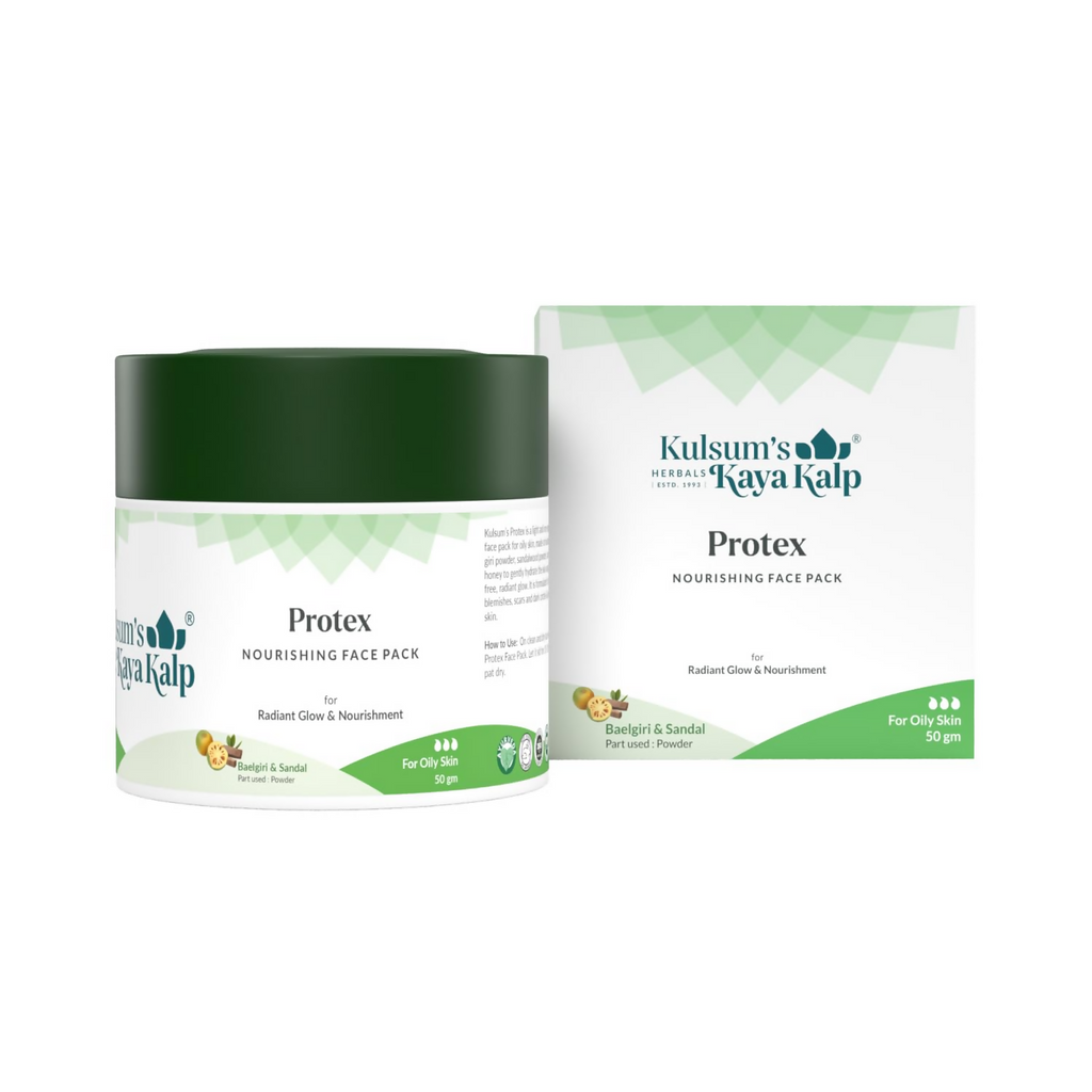 : Kulsum's Kaya Kalp Protex Nourishing Face Pack With Baelgiri & Sandalwood. This face pack for oily skin is specifically formulated to address the concerns associated with excess oil production. it helps to balance oil production, making it an ideal ingredient for oily skin.