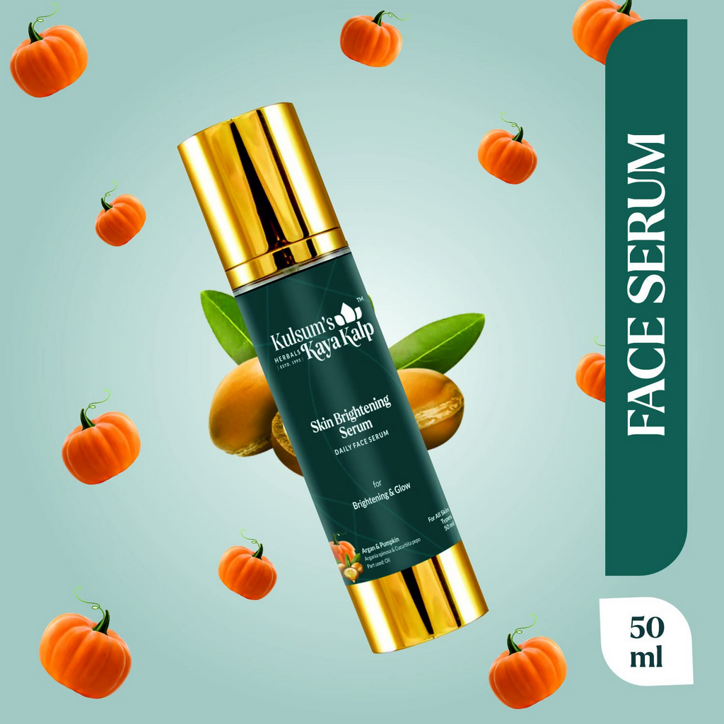 phrase: Kulsum's Kaya Kalp Skin Brightening Serum For Achieving A Radiant & Even Skin Tone About The Product: Brightens Skin: Enriched with Vitamin C from Kakadu Plum, it revitalizes and illuminates your complexion for a natural glow. Evens Skin Tone: Helps to even out skin tone by reducing dark spots and redness, leaving your skin looking more uniform.