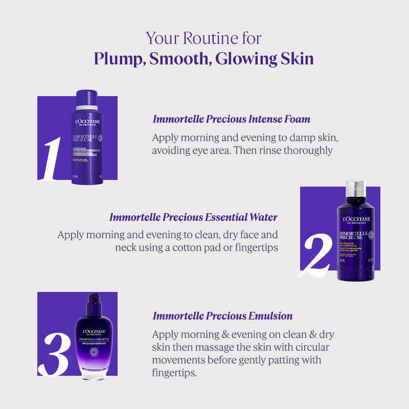 : L'Occitane Immortelle Precious Emulsion Cream About the Product: Daily milky emulsion to refine pore size, hydrate the skin and smooth fine lines. Enriched with Immortelle Antioxidant Superbomb to help fight first signs of ageing, improve skin elasticity and minimize pore size.