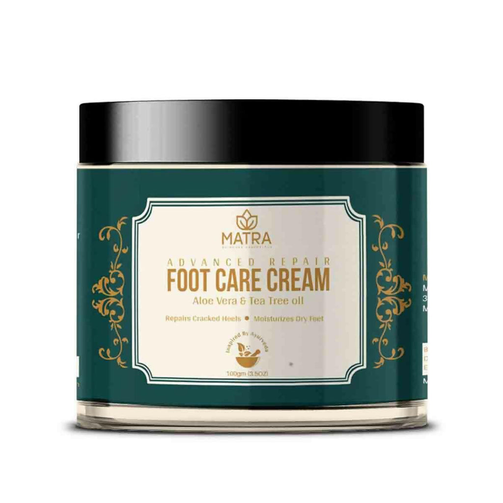 Paraphrase: Matra Foot Cream For Cracked Heels & Dry Feet With Aloe Vera & Tea Tree Oil Ingredients : Safflower Seed Oil, Jojoba Oil, Beeswax, Aloe Vera, Glycerin, Shea Butter, Tea Tree oil, Patchouli Oil, Indian Madder, Alum, Camphor, Fragrance, Jasmine Oil, Natural Vitamin E Directions For Use: Clean your feet with warm water. Apply liberally over feet
