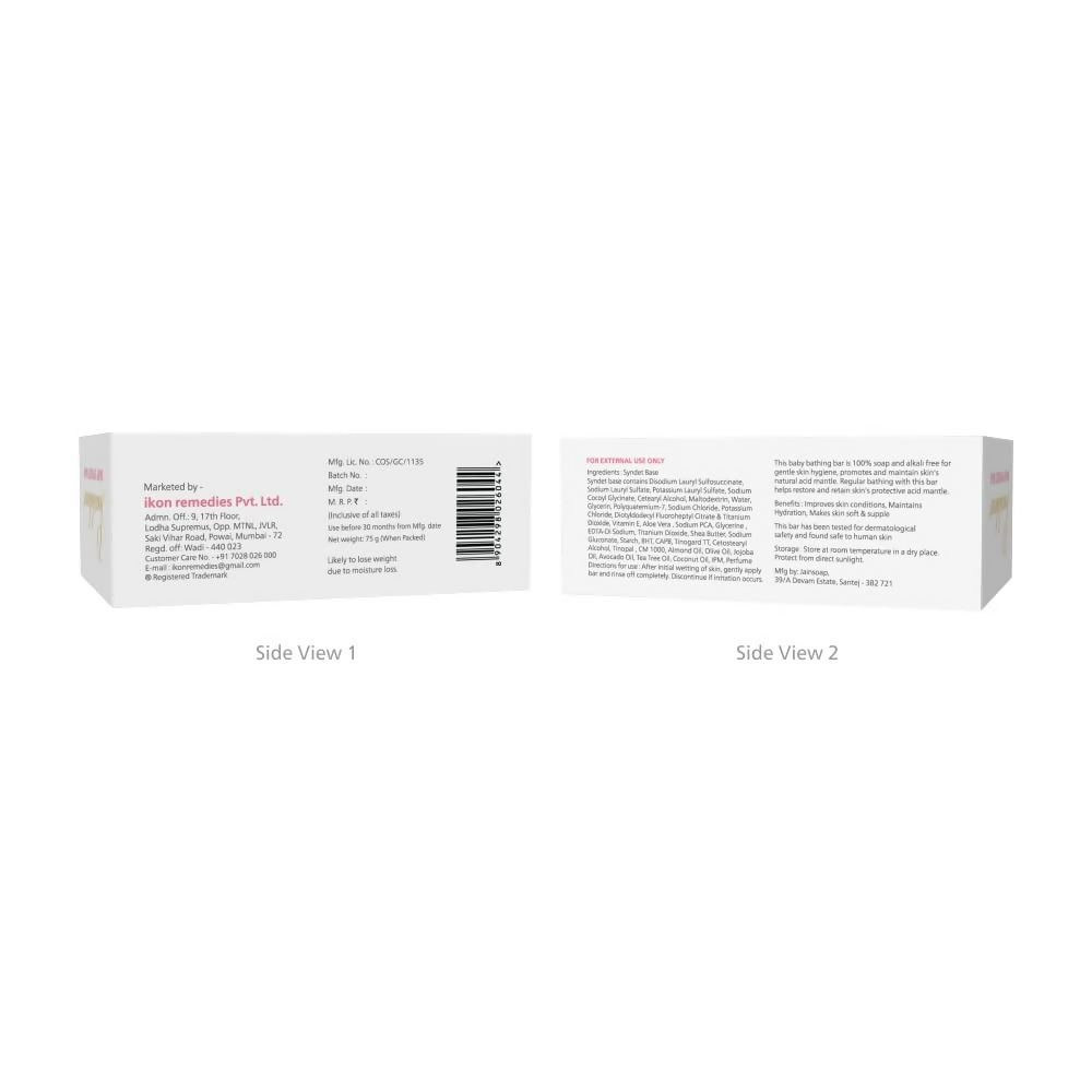 Paraphrase: Maxisoft Baby Syndet Bar Bathing Bar For Babies About the Product: Relieves Dryness: Made with goodness of Aloe Vera, Almond Oil, Olive Oil, Vitamin E, Coconut Oil, Shea Butter, Jojoba Oil, Avocado Oil & Tea Tree Oil, this bathing bar relieves dryness & keeps it healthy and nourished for long time.