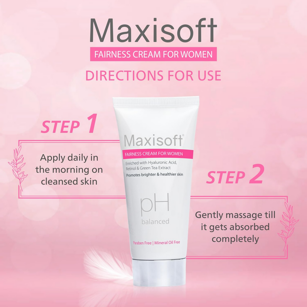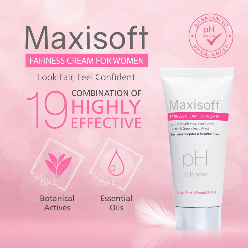 phrase: Maxisoft Fairness Cream For Women For Glowing & Brightening Skin About the Product: Glowing & Radiant Skin: Get radiant and youthful skin! face glow cream for Skin Brightening is dermatologically tested, Made safe certified, and is suitable for all skin types. face cream for women is super hydrating and keeps dullness at bay. Reduces the appearance of age spots, and dark circles, reduce fine lines & pigmentation.