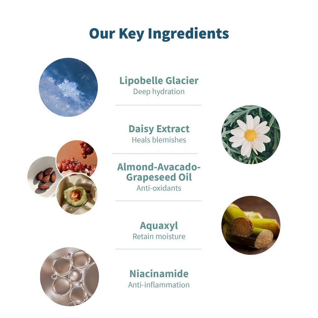 phrase: Meola Swiss Glacier Day Crème with Avocado, Almond & Grapeseed Oil About The Product: Lipobelle Glacier Infusion: The Meola Swiss Glacier Day Cream is enriched with Lipobelle Glacier. This infusion provides advanced moisturization and acts as a protective shield, maintaining the skin's resilience against environmental stressors.