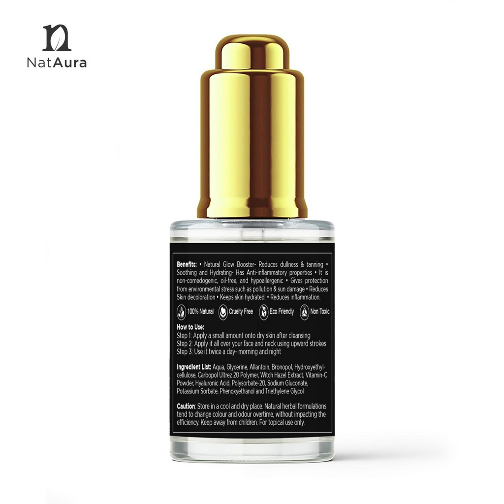phrase: NatAura Vitamin C Serum With Hyaluronic Acid Paraphrase: NatAura Vitamin C Serum With Hyaluronic Acid. This serum delivers intense hydration to your skin. Hyaluronic Acid reduces the appearance of fine lines and wrinkles, promoting a youthful and revitalized complexion.
