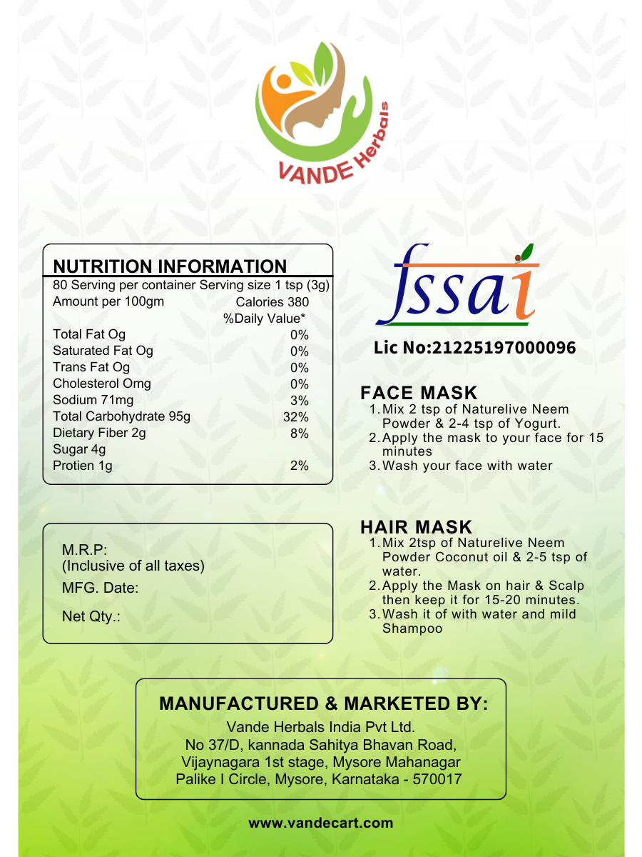 Neem leaf also called as Azadirachta indica is synergistcally processed with highly advanced technology. Herbalhills is India's Largest Online Selling Brand In Pure Herb Powders. Our Products Are Made Out Of Best Quality And Authentic Ayurvedic Herbs Available In India Which Are Specially Selected And Manually Graded To Give best Quality And Efficacy In 100% Guaranteed. neem powder for skin can be used for Ayurvedic and cosmetic purpose. Neem powder natural may act as a body cleanser, blood purifier, support immunity, and liver health. Neem is considered as a wonder herb and is important for its variety of medicinal uses. In Sanskrit Neem herb is called 'Sarva Roga Nivaran'. Neem powder is made from leaves of Azadirachta indica. It has as blood cleansing, analgesic, antiseptic, antibacterial & detox properties.