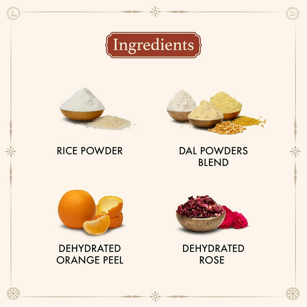 Paraphrase: Old School Rituals Handmade By Grandmas Baby Body Ubtan Natural Bath Powder About the Product: Take a sufficient amount of the ubtan in a bowl. Make a paste using fresh cream or milk. After the daily oil massage, rub the ubtan paste onto the baby’s body. Rinse with lukewarm water and pat dry. Product ID: 16050978. Product ID: 16050978. Product ID: 16050978. Product