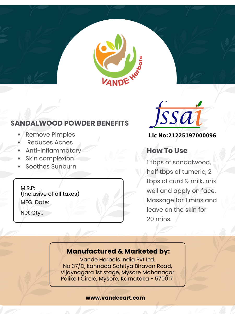 - sandalwood powder helps to even out skin tone, reduce dark spots, and soothe inflammation. Its calming and anti-inflammatory properties make it ideal for sensitive or acne-prone skin, leaving it feeling soft, hydrated, and visibly brighter.